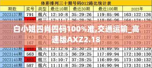 在未来的发展中,澳门交通运输管理局将继续推动“白小姐四肖四码”的深度应用,并结合“高速版AXZ2.18”的优势,将交通运输市场打造成一个安全、高效、可持续的生态圈。